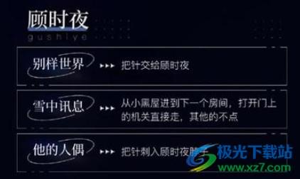 【雪中讯息】:从小黑屋进到下一个房间,打开门上的机关直接走,其他的不点。