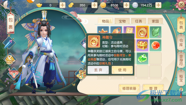 2、神雕令:神雕侠奖励江湖侠士的令牌,可以用来参与限时活动中投骰寻宝、幸运转盘等活动,也可用于兑换限时活动中的珍稀礼包。