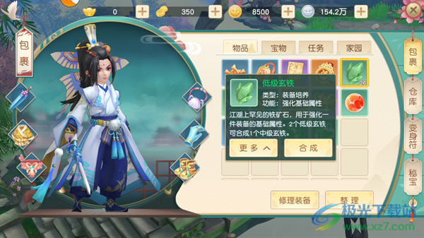 3、低级玄铁:江湖上罕见的铁矿石,用于强化一件装备的基础属性。2个低级玄铁可合成1个中级玄铁。