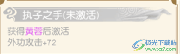 3、执子之手:获得黄蓉后激活,外功攻击+72。