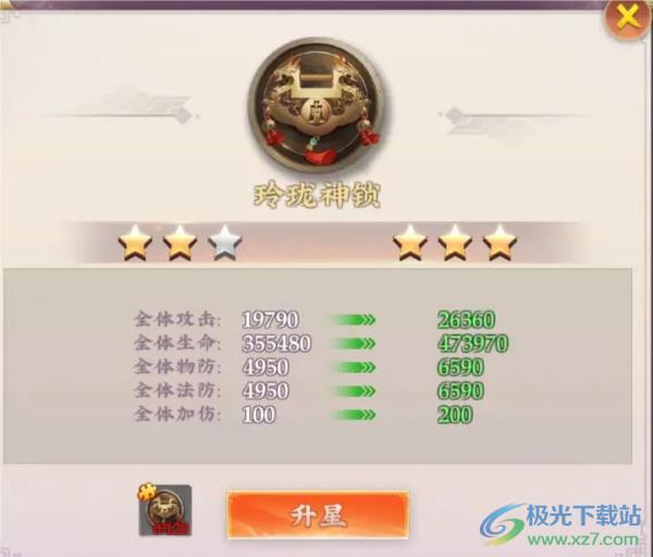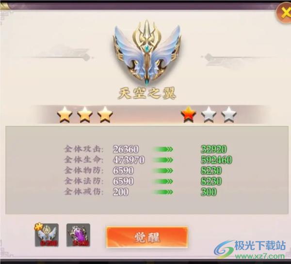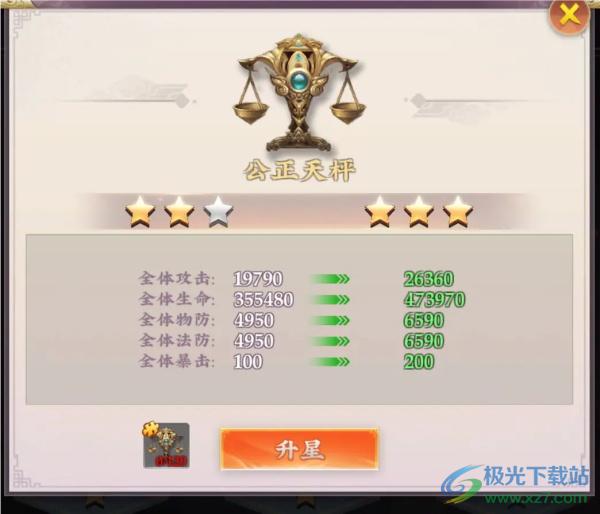 4.当经验值达标后,便可进阶成就等级,使攻击、生命、物防、法防四大属性获得提升。
