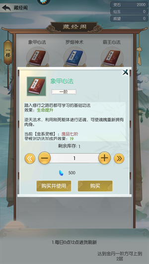 1、象甲心法:逆天法术,利用刚死躯体进行还魂,可使魂魄重新拥有肉身,效果是生命提升。