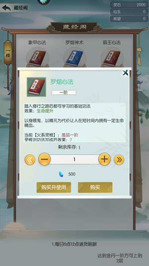 3、罗烟心法:以身喂鬼,以精元为代价让人在短时间内拥有一定生命精血,效果是生命提升。