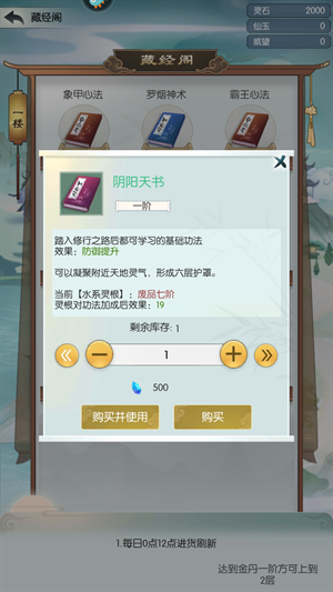 5、阴阳天书:可以凝聚附近天地灵气,形成六层护罩,效果是防御提升。