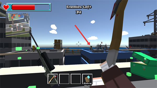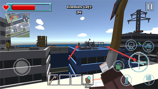 3、进入关卡后,关注界面显示的【Enemies-Left-34】剩余数量,利用下方道具推进,同时留意上方血条状态保障生存。