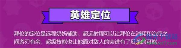2、拜伦的定位是远程奶妈辅助,超远射程可以让拜伦在消耗和治疗之间游刃有余,超级技能也让他面对敌人的突进有了反杀的可能。