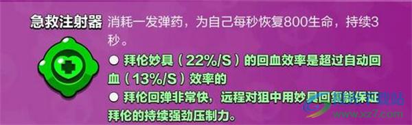 6、急救注射器:消耗一发弹药,为自己每秒恢复800生命,持续3秒。