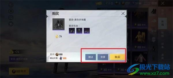 7、在弹出的购买选项中,有赠送、索要、购买三个选择,自己使用需要服饰币购买,赠送给别人就需要花费点券了。