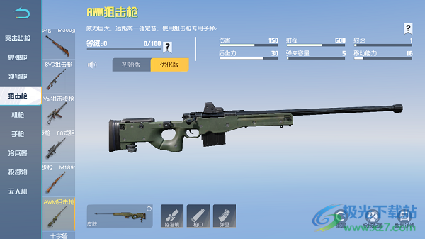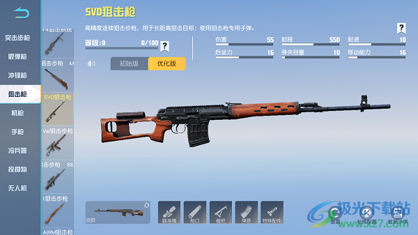 3、SVD狙击枪:高精度连续狙击步枪,用于长距离狙击目标,使用狙击枪专用子弹。
