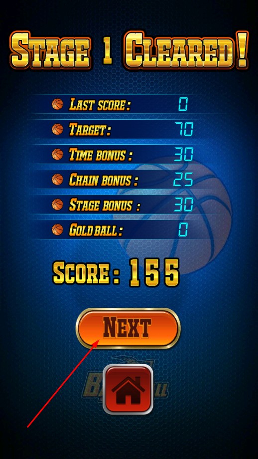 4、第一阶段完成后,点击【NEXT】按钮,可进入后续的投篮关卡。