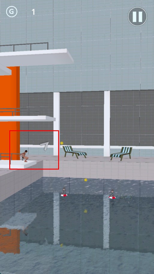 2、在跳水场景,通过操作让人物从跳板跃下。