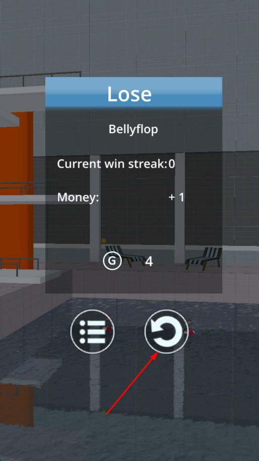 4、若挑战失败,点击重新开始按钮,可再次尝试跳水挑战。