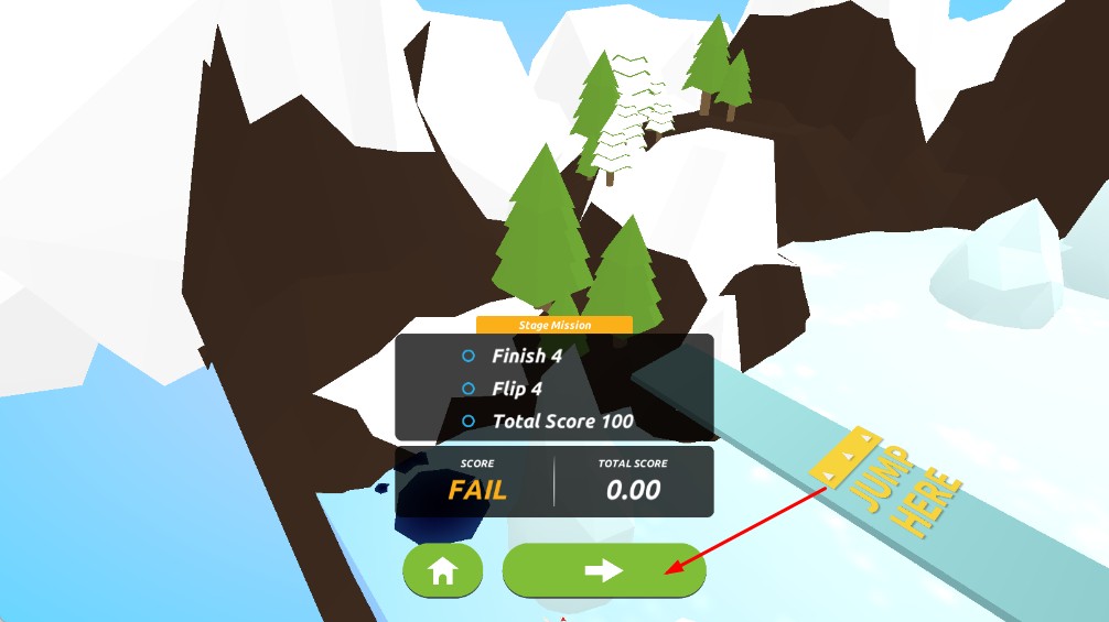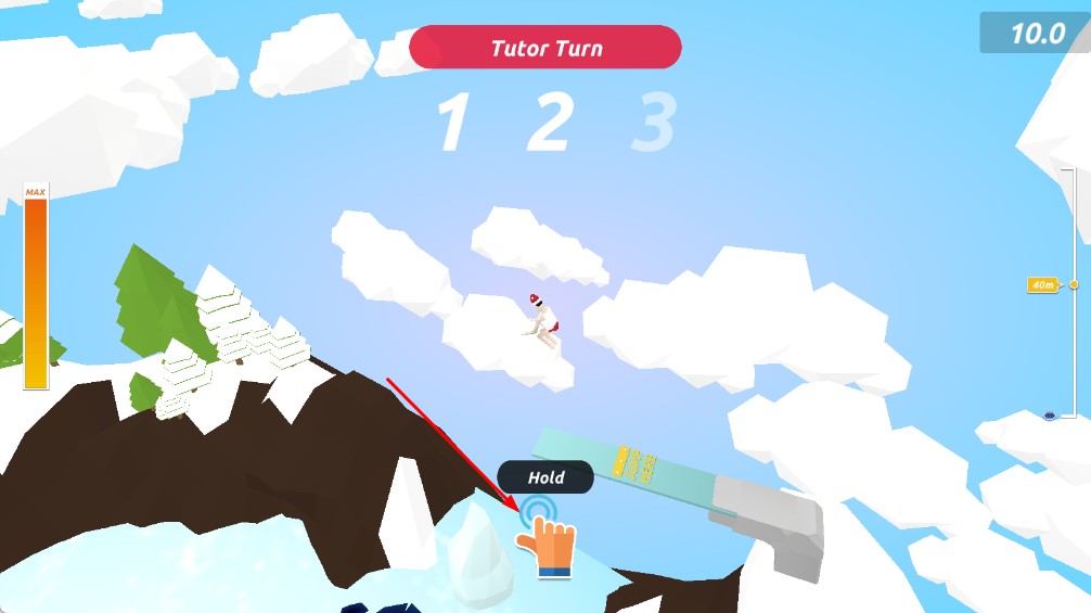 1、基础控制练习:轻触屏幕完成助跑起跳,在飞行过程通过左右滑动调整落点位置,确保准确进入冰洞区。