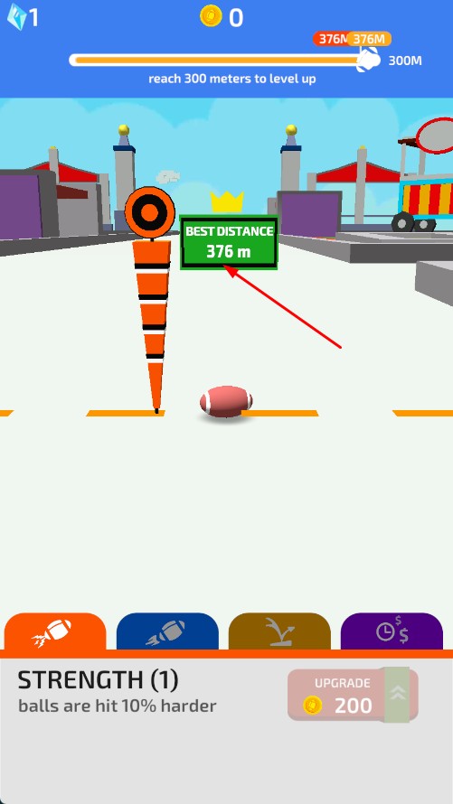 2、发射后,查看【BEST-DISTANCE】,了解最佳投掷距离。