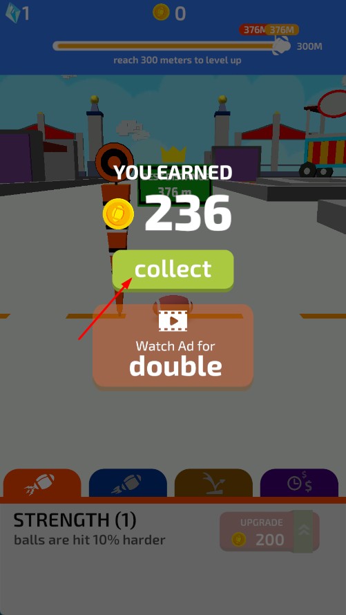 3、投掷结束后,点击【collect】按钮,领取236金币奖励。