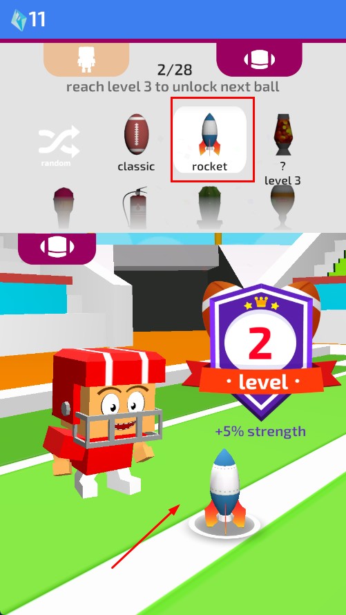 4、升级到2级后,可解锁火箭皮肤道具,提升投掷能力。
