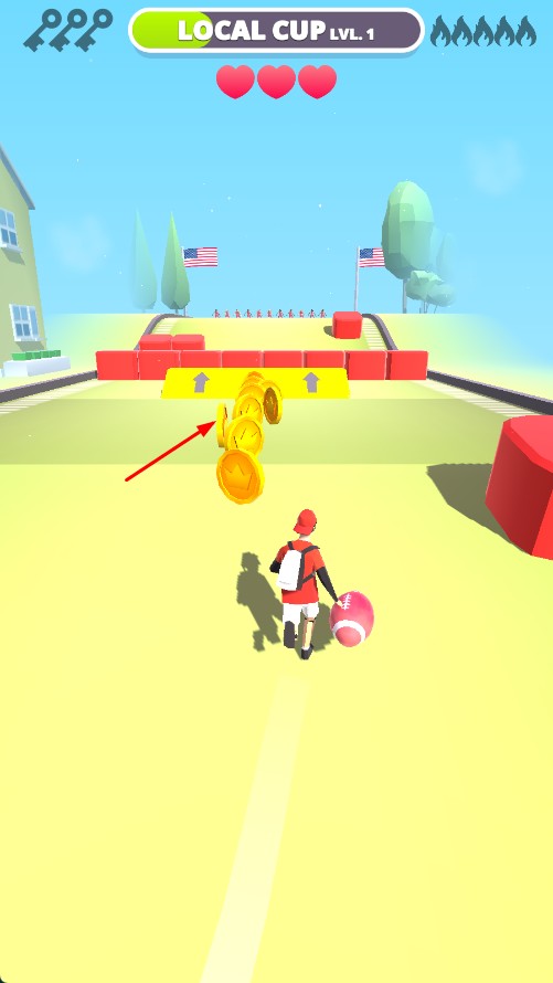 2、在跑道上操控角色移动,收集金币等道具。