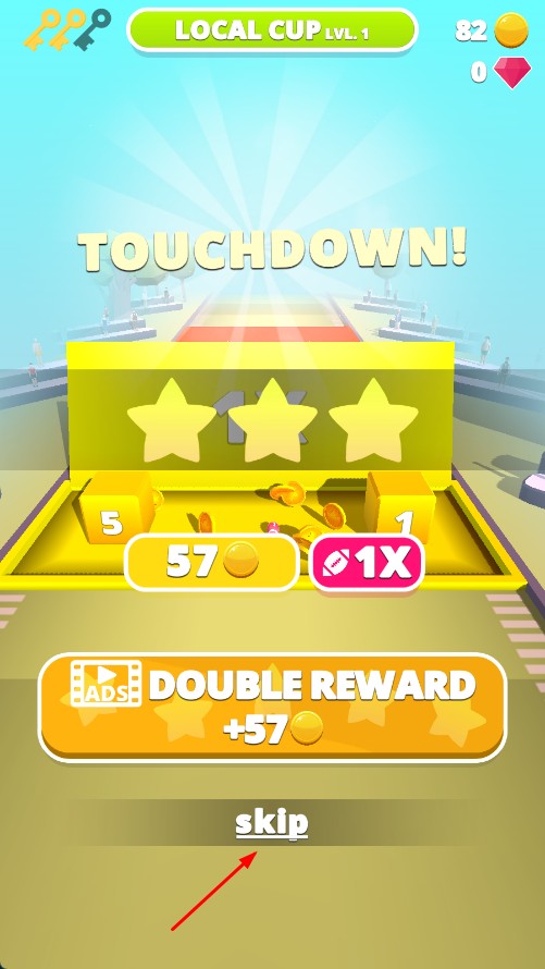 4、成功达阵后,可选择点击【skip】跳过奖励动画。