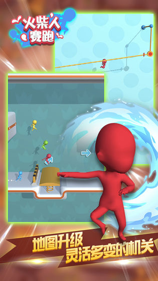 这是款以火柴人为题材打造的趣味休闲游戏,玩法简单易上手,游戏画面颜色丰富,还有丰富的游戏关卡。游戏中玩家控制着火柴人与其他玩家进行竞速,玩家都是随机匹配的,而且每个玩家的颜色都是不同的,火柴人在跑道上不断的赛跑着,利用灵活走位避开各种障碍,成为最终的胜者,获得丰富的奖励。