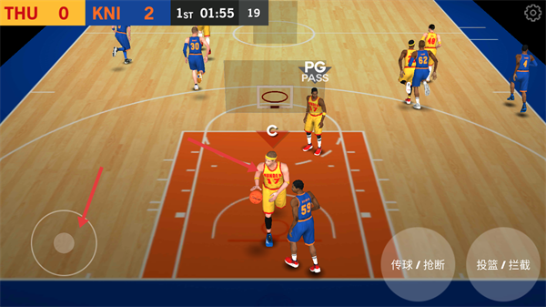 3、通过左侧虚拟摇杆操控球员移动,参与篮球对战。