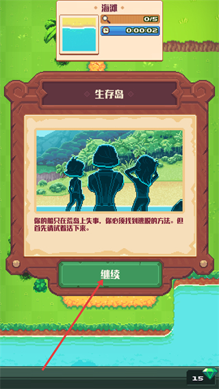 1、阅读【生存岛】的背景说明后,点击【继续】按钮,进入游戏的角色选择与场景界面。
