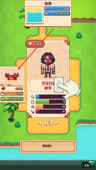 4、获取【螃蟹】道具后,点击界面中的【喂螃蟹!】按钮,可使用该道具完成对应的交互操作。