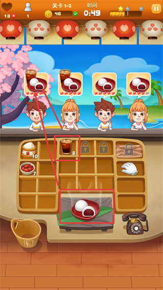 2、进入关卡1-2后,用手套将食材制作成点心以满足顾客需求。