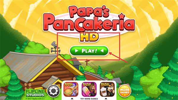 1、进入【Papa's-PanCakeria-HD】界面后,点击绿色的【PLAY!】按钮,即可进入游戏的角色选择环节。