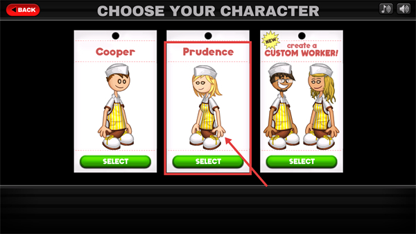 2、在【CHOOSE-YOUR-CHARACTER】界面,选择【Prudence】对应的【SELECT】按钮,即可确定该角色开启游戏。