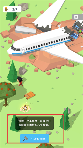 2、根据资源数量(如木材、石头)打造工具(如斧头),斧头可用于收集木材,升级后能增加木材产量。