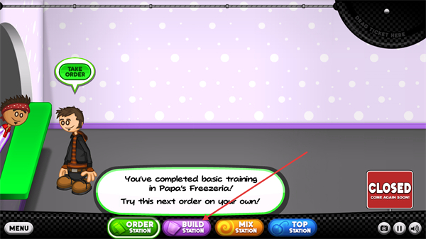 1、完成基础培训后,点击【ORDERSTATION】接收顾客订单,开始独立制作冰淇淋。