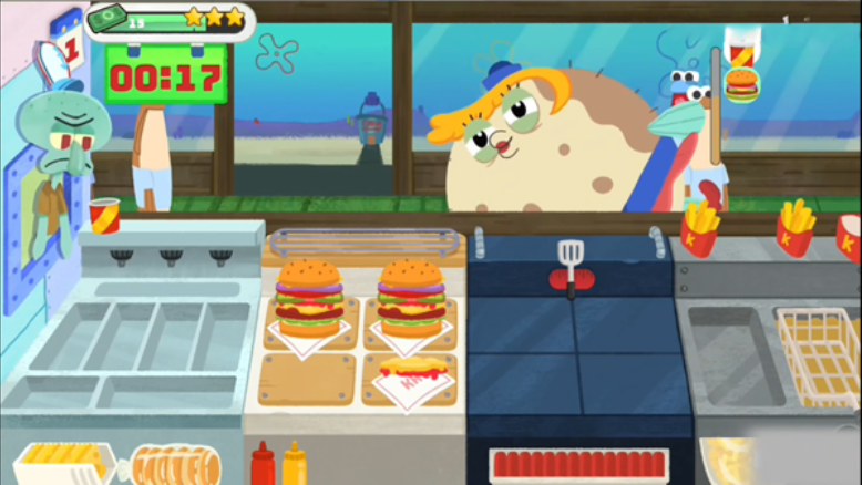 4、趣味蟹黄堡制作:与熟悉的海绵宝宝一起经营蟹黄堡制作挑战,面对众多订单任务和顾客个性化需求,做好服务,赚取金币。