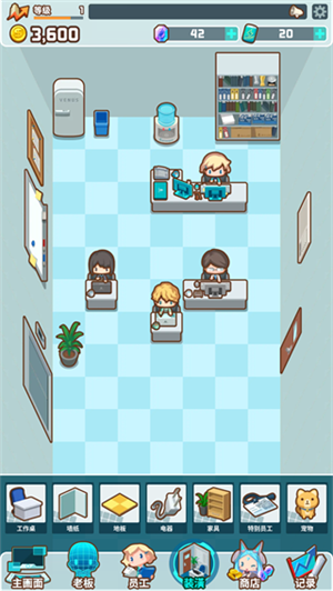 2.新颖独特的办公室经营游戏题材,超高自由度且极具趣味的游戏玩法,令人沉迷的游戏体验