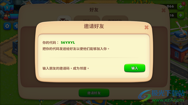 4、再出现的输入框之中,输入好友的代码即可完成添加好友。