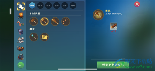 3、木镐:用木头手工做成的木镐,提高采集矿物的效率。