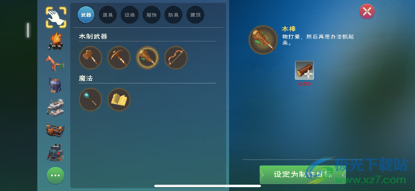 5、木棒:木头制成的钝器,使用它将猎物打晕,然后再想办法抓起来。