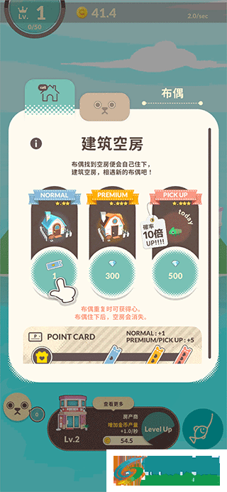 简单的点击操作,即可赚取金币,获得的扩建设施,可以吸引更多的小动物加入。