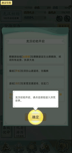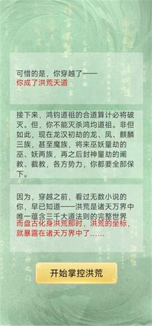 2、看完剧情介绍后点击“开始掌控洪荒”开始游戏。