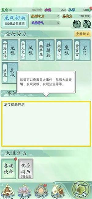 6、这里可以查看重大事件,包括大能破境、发现灵根、发现法宝等等。