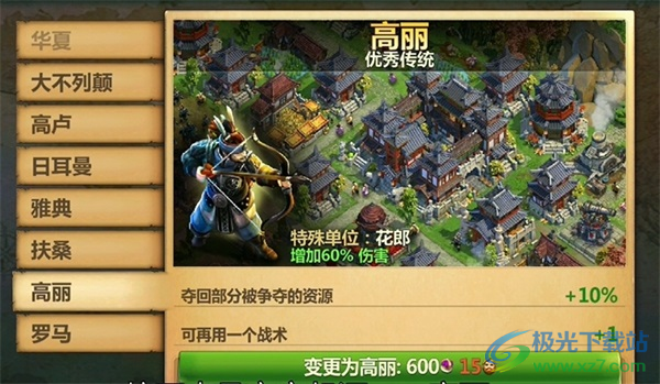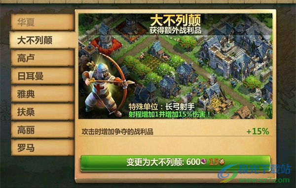 2、大不列颠攻击时增加争夺的战利品,特色兵种为长弓手,攻击优先,速本的福音。