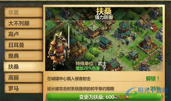 6、扶桑在城镇中心朝入侵者射击,延长被攻击时系统提供的和平条约期限,极致防御适合种田。