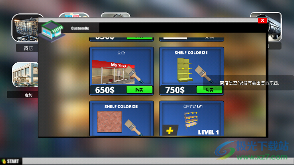 4、最后还需要玩家在商店之中去购买不同种类的货架,只有有了货架才能够正式的开始营业。