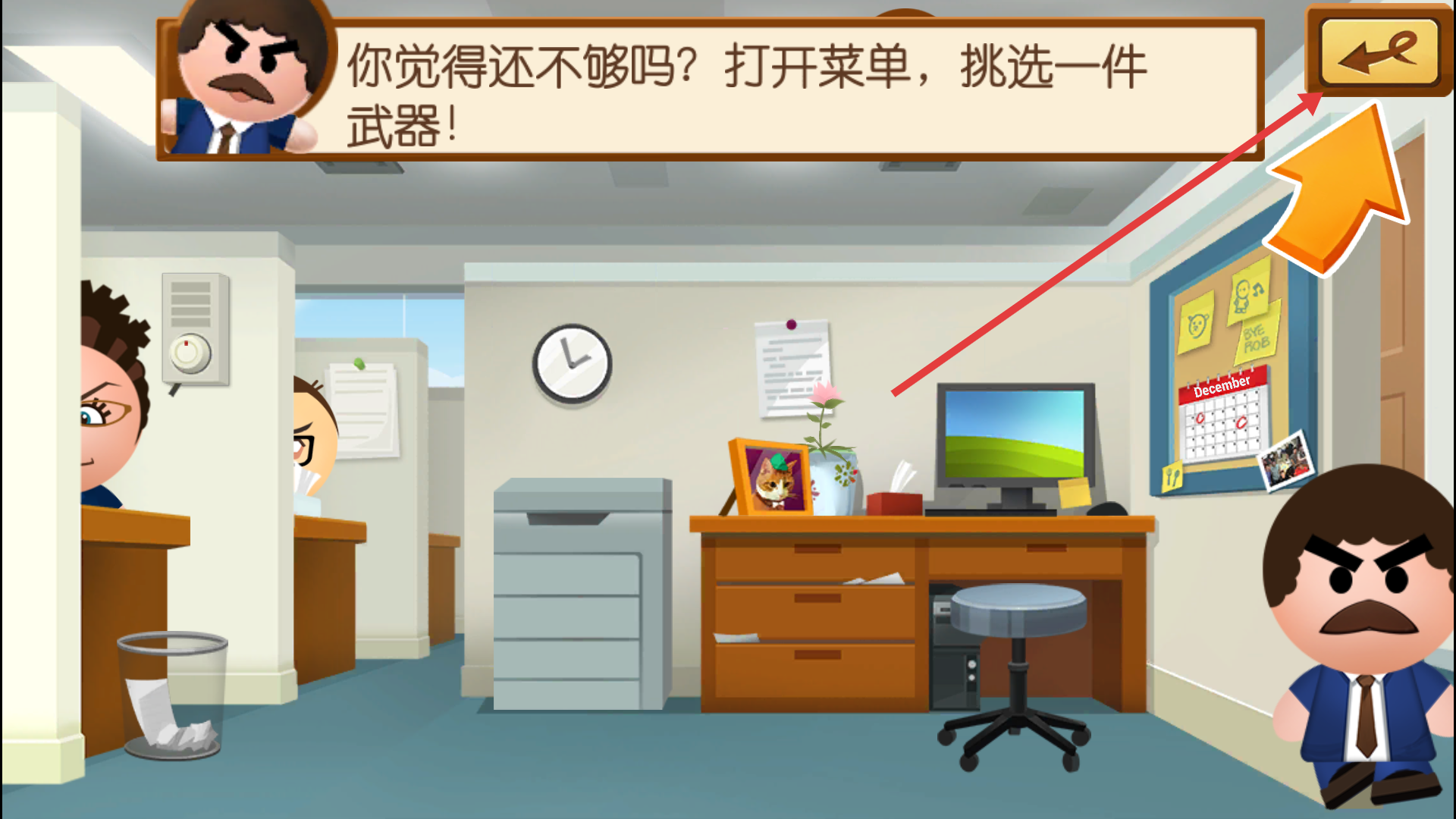 1、夸张搞笑的画风搭配逼真打击反馈,老板被攻击时的趣味反应与立体画面,让解压过程更具沉浸感与爽感。