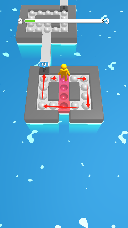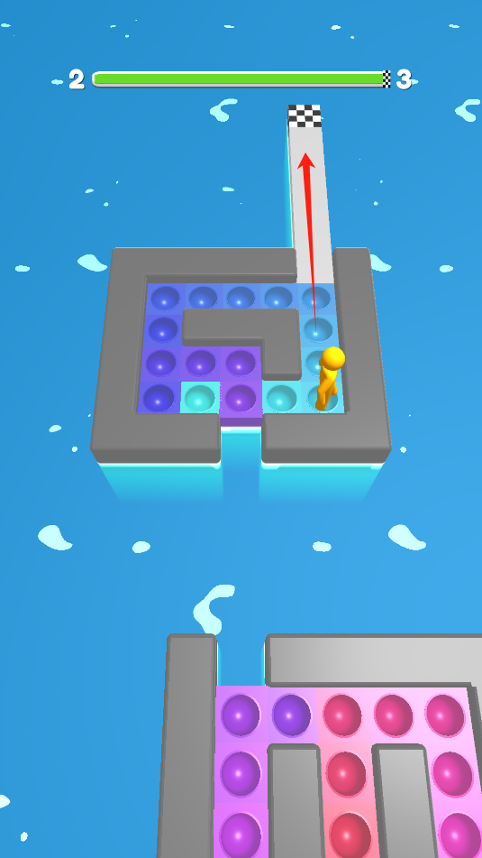 2、游戏需滑动屏幕引导角色行走,走过所有的白色通道,把白色通道染上颜色。