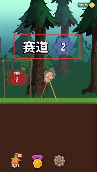 1、选择【赛道-2】进入关卡,当前金币数为【11875】,操控角色(旅鼠)开始赛道挑战,向终点推进。