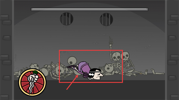 4、场景切换至牢房,点击红色框选的紫色角色区域,确认当前状态,推进关卡的后续剧情环节。