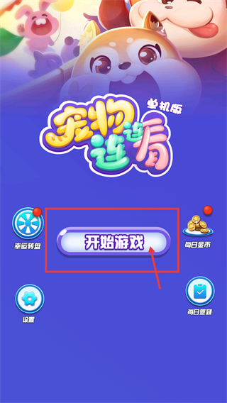 1、看到【宠物连连看】界面,点击红色框选的【开始游戏】按钮,进入【关卡1】的宠物配对消除关卡,开启本次连连看挑战。