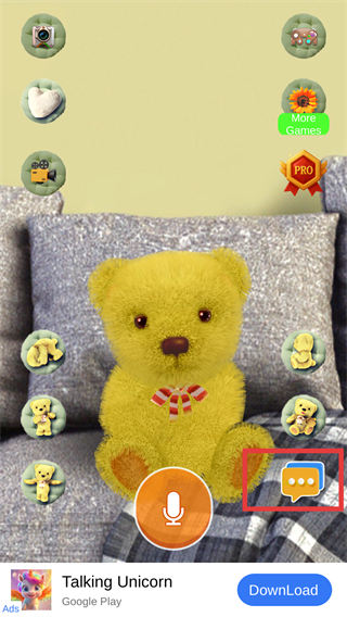 1、在黄色小熊主题的游戏主界面,点击聊天按钮,进入与小熊的对话交互界面。