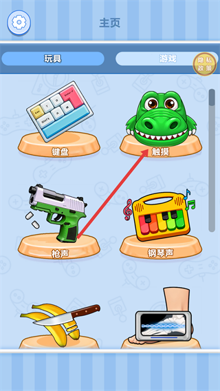 1、在主页选择“鳄鱼”项目,进入该项目对应的互动游戏界面。