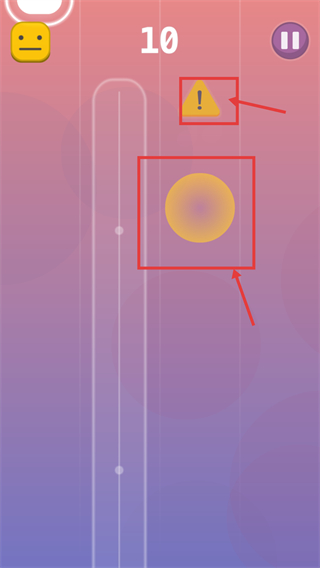 2、游玩过程中看到分数【10】与红框内的黄色元素,留意上方【!】提示,及时处理该元素以避免操作失误导致分数受损。